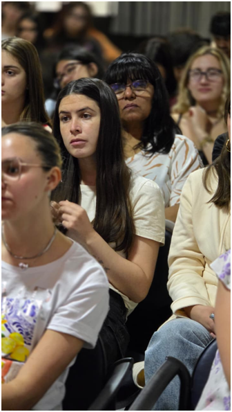 Los estudiantes participaron activamente realizando preguntas sobre la experiencia profesional de las invitadas. Al final del encuentro, Paola Herrera Zambrano y la profesora a cargo realizaron un juego de preguntas relacionadas con la charla, y los estudiantes recibieron obsequios por cada respuesta correcta. Para cerrar, la profesora Nocelli entregó un reconocimiento a las invitadas.