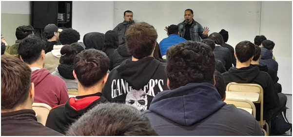 Jorge dialogó con los estudiantes del Mariano Moreno en la cual comentó sobre sus experiencias en el boxeo profesional, sus peleas más importantes, sus lesiones más fuertes y además el motivo por el que tuvo que alejarse del ring de boxeo.